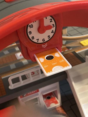 - GLOBAL TRAVEL: Comes with five tickets embedded with scenes from Paris, London, New York, Berlin and Beijing. When each ticket is inserted beneath the station clock, images of the different cities are projected on the floor.