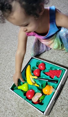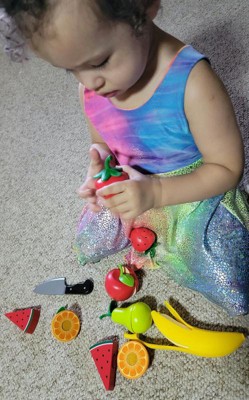 [This review was collected as part of a promotion.] This is a really great toy for your little one. The food is really realistic and the colors are vibrant. I love that it’s a great learning toy that helps provide your little one fine motor skills with being able to cut up the fruit in 1/2.
