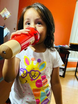 [This review was collected as part of a promotion.] The kids love this toy. It mimics a microphone, yet it is so simple. There are no batteries to use, so batteries running out is never a problem :) Also, it doesn't go very loud - just loud enough to give that microphone feel, without bothering everyone in the house. All in all this one is a winner.