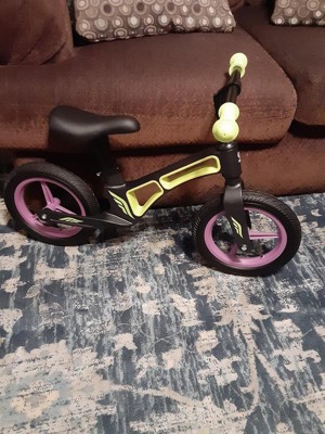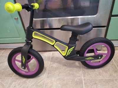 [This review was collected as part of a promotion.] I love the color scheme, however here are the things that shine about this bike: -light weight and smooth wheels -seat post isn't a simple circular tube - it's a tear drop so the weight of the child doesn't spin the seat around over time. -plastic is the rugged 'powder coated' rough-feeling plastic as opposed to cheap smooth plastic. -front handlebar adjustment height extremely high range for taller kids. If I had one gripe, it would be to recommend a little bit of a wider footrest for larger kids, but my 2 year old fits this thing perfectly! No other issues... much better than the one I recently purchased from Costco.