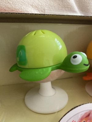 [This review was collected as part of a promotion.] First off, these rattles are absolutely adorable! I love the sea creature theme. I like that they all have different sounds to give a little variety. I do wish that the stems on the rattles were a little longer so it was easier for little hands to hold. I think the suction worked well enough for a little baby to have. I would definitely recommend to other moms out there.