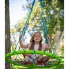 TRELINES: 38" DREAMCATCHER SWING - POPULAR BEST SELLER! An attractive colorful woven dreamcatcher pattern creates an enticing swing for both kids and adults! This swing adds a touch of whimsical elegance to any outdoor setting, making it the perfect focal point for backyard adventures and leisurely afternoons. EFFORTLESS ASSEMBLY: Simple snap together assembly. PREMIUM QUALITY CONSTRUCTION: Crafted with durability in mind, our Dreamcatcher Swing is built to last. Made with a core steel ring, heavy-duty adjustable PE UV-resistant ropes, and hanging carabiners. ELEVATE YOUR OUTDOOR SPACE: Transform your backyard into a sanctuary of serenity and fun with our Dreamcatcher Swing, an essential addition to any outdoor oasis where laughter, adventure, and relaxation await.