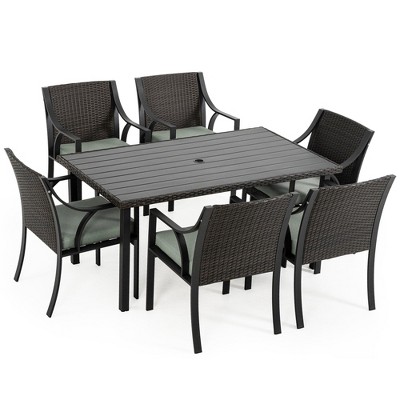 7 Piece Patio Dining Set Brown