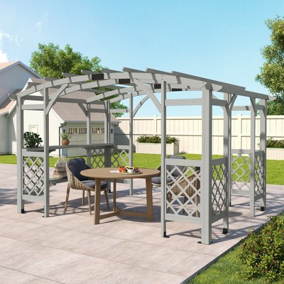 HAPPATIO Outdoor Arched Aluminum Retractable Pergola with Canopy Fixed in Various Positions