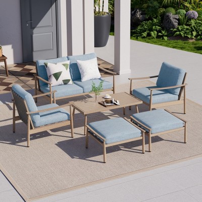 HAPPATIO Patio Outdoor Furniture Set,4 Piece Aluminum Conversation Set with Coffee Table,Swivel Chairs and 3-Seat Sofa for Yard Deck Poolside(Brown)