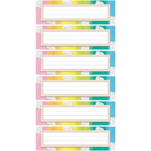 Happily Ever Elementary Creatively inspired Nameplates, 36 Per Pack, 6 Packs | Organize cubbies, lockers, classroom supplies, student desks, and more with boho décor using the Carson Dellosa Creatively Inspired Nameplate Set. Each pack includes 36 nameplates to accommodate an entire classroom and more, each measuring about 9.5" x 2.8". Use each nameplate on student's desk, as a cubby or desk organizer, chalkboard labels, locker décor, name tags, classroom storage, and classroom organization. You can also use the boho rainbow name tags for classroom labels or to organize boho classroom décor and office décor. Each desk nameplate has ample writing space for names and features a rainbow design with splotches of black and white leopard print to add boho neutral animal print classroom décor to your school supplies. The Creatively Inspired collection, designed by Stephanie and Loreal of @HappilyEverElementary, partnered with Carson Dellosa to help create a vibrant, positive, and creative environment that inspires students to learn. Sold as 6 packs for a total of 216 nameplates.