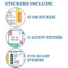 - Includes 2 sheets of stickers for adding organizational tabs, record to-do lists, and add decorative accents and reminders