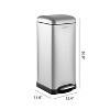 This semi-rectangular 8-gallon trash can hides plenty of capacity within its slim size, making it a great choice for home offices, craft rooms, laundry rooms and other small spaces. Featuring a profile hinge and retro silhouette -- its sleek design allows it to sit close to a wall or cabinet. Its design features don't end there -- its finished in powder-coated stainless steel, features a steel step-on mechanism that allows for smooth openings and closings (no pinched fingers!), and has a removable plastic liner that makes bag changes a cinch. Steel pedal ensures durability, so the open feature lasts for years to come