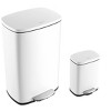 This rectangular 13.2-gallon trash can is the perfect solution for the family or office in need of top-of-the-line functionality. Featuring a profile hinge and rectangular silhouette -- its sleek silhouette allows it to sit close to a wall or cabinet. It's design features don't end there -- features a step-on mechanism that allows for smooth openings, and has a removable plastic liner that makes bag changes a cinch. For a limited time, get a matching, smaller 1.3 gallon step-pedal trash bin FREE with your purchase of this style.
