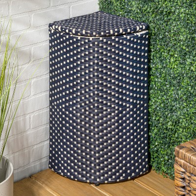 happimess Darla 14.27-Gallon All-Weather Wicker/Metal Swing Top Hideaway Outdoor Trash Can, Navy/White