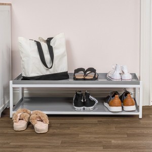 - Our shoe rack's sleek industrial design adds an element of interest to your entryway