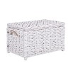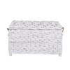 This distressed white wicker trunk is perfect for entryways or underneath consoles. In addition to adding style to a room, its removable lid and storage capacity make it a practical and durable solution for toys, shoes, or books. Best of all, this versatile trunk folds flat for storage and is easy to assemble, so it can be tucked under a bed when not in use.