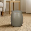 This modern drum table features a hammered metal texture that adds depth and gives it a rustic, artisan vibe. Crafted from lightweight yet durable metal, it includes a removable top that doubles as hidden storage. Use this chic, versatile stool for holding drinks beside a chair, or line up two or three in front of a sofa.