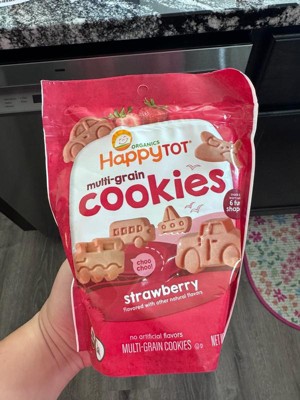 [This review was collected as part of a promotion.] These cookies taste great, and even my toddler loves them! My toddlers favorite flavor for any food is strawberry so of course he loves these strawberry cookies as well. I love that I can take comfort in that the ingredients are healthy, organic, and full of whole grains. These cookies are easy to snack on at home or take on the go.