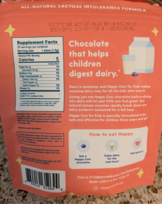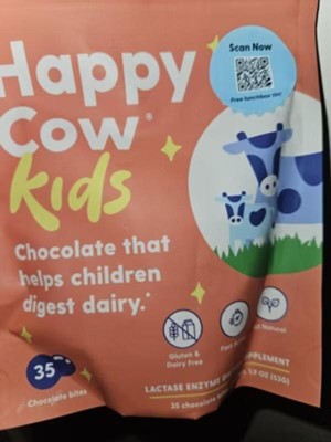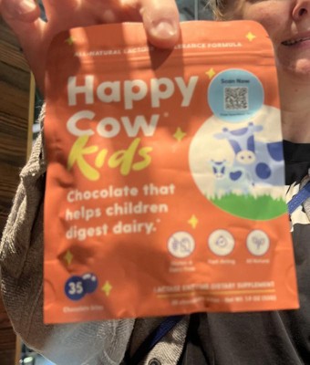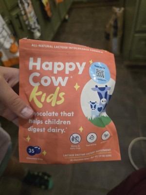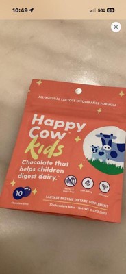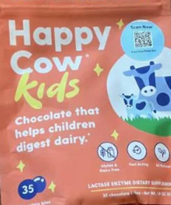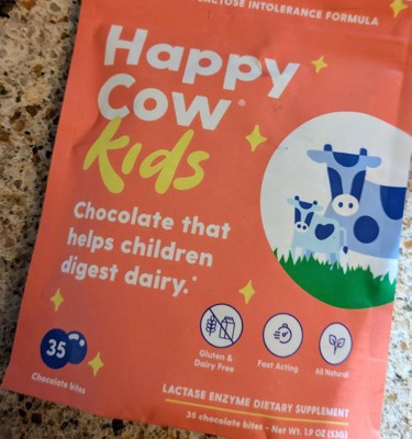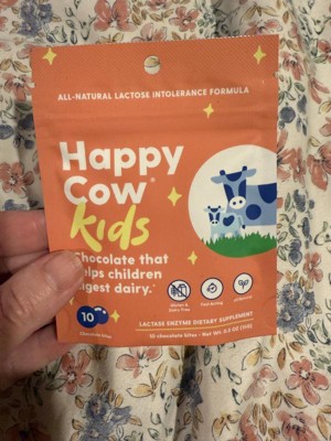 Happy Cow makes delicious & kid-friendly chocolate bites that help little ones easily digest dairy - providing fast-acting relief for the 70% of people who are lactose intolerant or sensitive to dairy. Just eat one fast-acting Happy Cow chocolate bite with the first sip or bite of dairy and feel great.