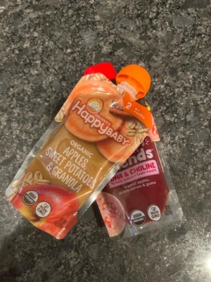 My daughter loves these Happy Baby pouches but this flavor is her absolute favorite. I was bummed the store didn’t have more. The texture is perfect for sucking it right out of the pouch. Smoother than applesauce but about that thickness. I tasted a little just out of curiosity and I can tell why she loves this flavor. I can get a little bit of the bananas, raspberries and oats. Nothing is too overpowering. These are organic and high quality pouches. I prefer them over the bigger name brands because I love supporting small businesses. The packaging is cute and durables. Easy for baby to handle and see what’s inside. These are priced comparable to the other options out there but I love that these pouches are the biggest I’ve seen in comparison. They have about .5 more ounces than any other brand. Great product!
