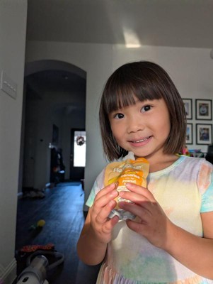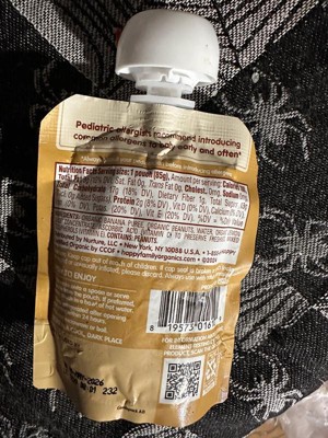 [This review was collected as part of a promotion.] My toddler did not take to this very much. He tried it a few times and just kept making a sour face and said “all done.” The packaging is simple — just twist off the top and squeeze to eat. The ingredients are fair for a pre-packaged/shelf-stable toddler snack, and the texture was decent (a tiny bit on the thicker side). I actually tried this product and I thought it tasted like a sweet, yet tangy, peanut butter. I think if I fed my 20-month-old these more often, he would eventually get used to it as they don’t taste too bad.
