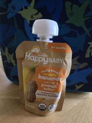 [This review was collected as part of a promotion.] My Baby absolutely loves Happy Baby Nutty Blends Bananas & Peanut Butter Pouch. It is creamy and not too sweet. Nice flavor and tasting. I also bought some more for my kids.