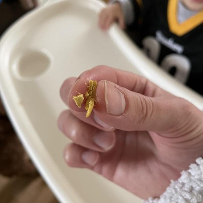 I love these for my 9 month old. We started off with a different flavor and I was sold on them. However, this flavor in the green bag does not break in half easy. It crumbles into too many pieces to feed him. The other ones break perfectly in half. Can’t use them until he can eat the whole thing at once without choking, in the Target parking lot :) lol