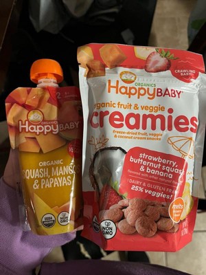 [This review was collected as part of a promotion.] We love this Happy Baby pouch! The combination of squash, mango, and papaya creates a sweet and smooth flavor that my little one absolutely enjoys. I feel at ease knowing it’s made with organic ingredients and no unnecessary additives. Plus, the texture is perfect for babies transitioning to solids, and the packaging is super convenient for on-the-go. Definitely a must-have on our list of healthy snacks!