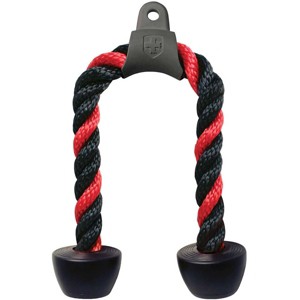 Made out of heavy duty coated nylon that is 1 1/4" in diameter. 26" in length. Custom engineered ball grips provide a stronger grip. Rope is supported by a forged steel grommet that hooks into any universal gym system.