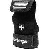 Harbinger Weight Lifting Grips are a versatile accessory that works as an all-in-one palm protector, wrist support, and lifting strap. Made from genuine Durahide leather with black neoprene stretch padding, Harbinger's Weight Lifting Grips can be worn flat against the palms or wrapped around the bar and under the hand like a leather hook lifting strap. With either approach, the padding conforms to the bar for a secure grip while helping to prevent blisters and calluses. Meanwhile, an adjustable, heavy-duty nylon strap and patented NeoTek pad keep the wrists well cushioned and supported. Harbinger's "un-glove" design helps the Lifting Grips offer a better range of motion for the fingers, and an easy release on/off buckle makes them simpler to remove after a workout. This 2-in-1 training tool includes a palm protector and lifting strap. Lay it flat for palm protection or wrap it around the bar. The patent pending BioForm pad forms to knurling and secures grip on the bar. The exclusive SpiderGrip Durahide leather prevents calluses and blisters. Heavy duty nylon strap with NeoTek pad and steel buckle provides strong wrist support. The un-glove design provides full finger range of motion. Equipped with an easy release on/off buckle. Sold in pairs.