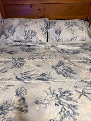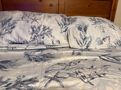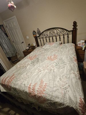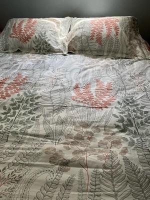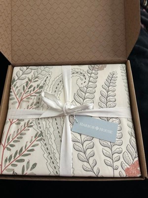 Harbor House Living 100% Cotton Botanical Print Duvet Set, Premium Sateen Face Bedding Set with Matching Shams, Blush/Grey, King