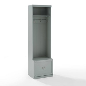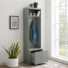 Embrace the beauty of an organized entryway with the Harper Hall Tree. Slimmer than a traditional hall tree, this tower has four large hooks for hanging coats, hats, and scarves. An open storage shelf on top and a full-extension drawer in the base make this tower more than a traditional coat rack. The label holder hardware on the storage drawer is customizable allowing for more personalized organization. Modular in design, the Harper Hall Tree can be paired with a variety of items within the collection.