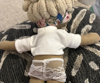 We have had this doll for a year. One of my daughter’s first dolls. They are SO well made. Love that it’s a black owned company. I saw all of them were 50% off so I was like let’s support this !! A year later my daughter takes the clothes off and we find LACE underwear on the doll? Completely unnecessary. The dolls don’t need underwear to begin with but lace?? Highly inappropriate.