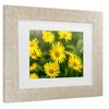 This ready to hang, matted framed Wall Décor Living Room by Trademark Fine Art features yellow flowers filling a field. that'll look great in any bedroom, kitchen, bathroom, or apartment. Whether it's contemporary, rustic, modern, or traditional style wall art décor, Trademark Fine Art offers a variety of high-quality, carefully built pieces that will surely complement any style with art themes that range from fascinating abstracts to breathtaking landscapes. Each bathroom wall art piece is printed on durable cotton poly blended canvas using Giclee, a process for creating high-quality fine art reproductions that are nearly indistinguishable from the original piece.