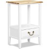 Bring a little extra design flair to your living room by adding this attractive end table. The traditional design style ensures a look that outlasts trends. Radiant in a crisp white finish that's sure to impress. Tapered wood legs add to the elegance of the overall design. You'll appreciate the display shelf and storage drawer to hold your favorite decor. Classic bronze hardware adds a warm and long-lasting look. Crafted from durable materials for style and long-lasting durability.