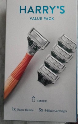Harry's Original Razor Handle for Men with 5 Razor Blade Cartridges - Ember Orange