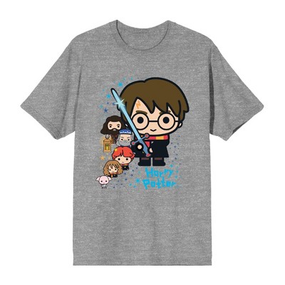 Harry Potter Chibi Characters & Glowing Sword Crew Neck Short Sleeve Men's T-shirt - 1 of 3