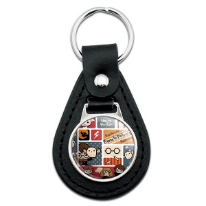 Harry Potter Cute Chibi Pattern Black Leather Keychain
