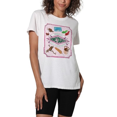 Our supersoft cotton t-shirt is the all-season preshrunk cotton tee you've been waiting for. Showcasing a relaxed silhouette that pairs easily with jeans or a cardy, this classic crew will become a fashion-forward favorite. Our everyday women's tee features short sleeves, a ribbed crew neckline, relaxed fit, and versatile straight hemline to complement everything in your closet from those oh-so-comfy jeans, to that skirt your mother gave you. Designed to last, our premium top is crafted from 100% preshrunk cotton for comfort and breathable durability. For best results, wear weekly, machine wash cold, and tumble dry low. Each of our designs are 100% officially licensed. This exclusive creation was brought to life by our talented in-house team of graphic artists who often hand draw and illustrate each T-shirt design. Our graphic tees are perfect for birthday presents, Christmas & holiday gifts, swag/goodie bags, or just treating yourself!