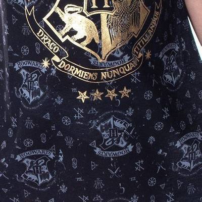 • WONDERFUL, LIGHTWEIGHT GOLD FOIL PRINT - This wonderful Harry Potter Nightgown features a large Hogwarts gold foil design on front with a wonderful all-over front pattern of Harry Potter related designs. The back and raglan sleeves have a solid black color.