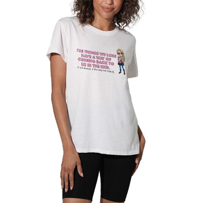 Our supersoft cotton t-shirt is the all-season preshrunk cotton tee you've been waiting for. Showcasing a relaxed silhouette that pairs easily with jeans or a cardy, this classic crew will become a fashion-forward favorite. Our everyday women's tee features short sleeves, a ribbed crew neckline, relaxed fit, and versatile straight hemline to complement everything in your closet from those oh-so-comfy jeans, to that skirt your mother gave you. Designed to last, our premium top is crafted from 100% preshrunk cotton for comfort and breathable durability. For best results, wear weekly, machine wash cold, and tumble dry low. Each of our designs are 100% officially licensed. This exclusive creation was brought to life by our talented in-house team of graphic artists who often hand draw and illustrate each T-shirt design. Our graphic tees are perfect for birthday presents, Christmas & holiday gifts, swag/goodie bags, or just treating yourself!