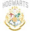 Enroll in adventure with this Harry Potter tee. The shirt features the crest of Hogwarts School The crest is divided into four parts showing the houses of Gryffindor, Slytherin, Ravenclaw, and Hufflepuff. The houses' mascots of a lion, snake, eagle, and badger are present against red, green, blue, and yellow backgrounds. The school's motto appears on a banner below the crest. Hogwarts is written above in white letters. This shirt makes a great gift for Harry Potter fans.