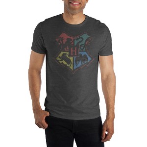 You don't have to choose a favorite Hogwarts house, you can love them all in this unique Harry Potter tee. Features all four Hogwarts house emblems in a bold detail design. This charcoal grey t-shirt is made of 100% cotton for comfort and durability.