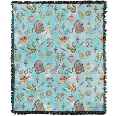 Harry Potter Hogwarts Floral Crest Blanket 50"x60" Woven Tapestry