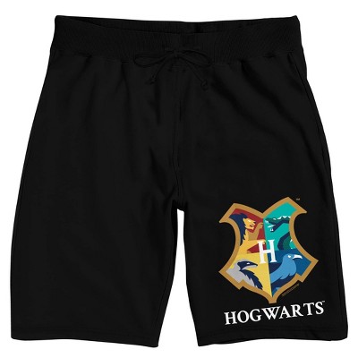 Harry Potter Hogwarts School Crest Men's Black Graphic Sleep Shorts