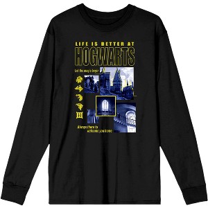 Harry Potter Hogwarts School Men's Long Sleeve Black Graphic Tee - 1 of 2