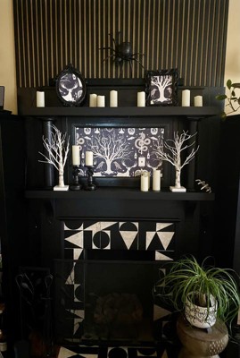 I chose this design in anticipation of Halloween, my favorite holiday. The design and color are so perfect for the fall season.Love, love, love! I will be securing more black frames and framing more of this wallpaper…