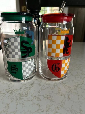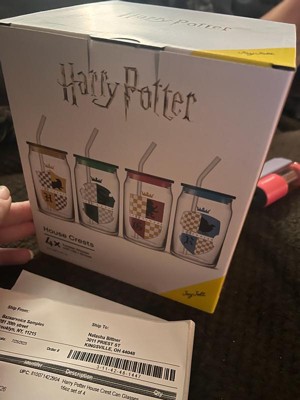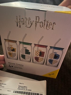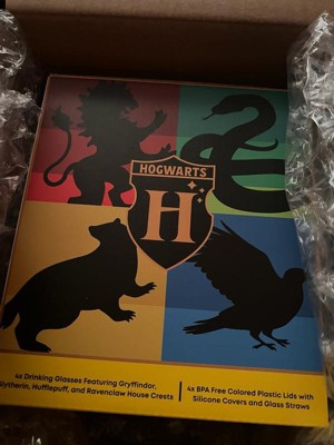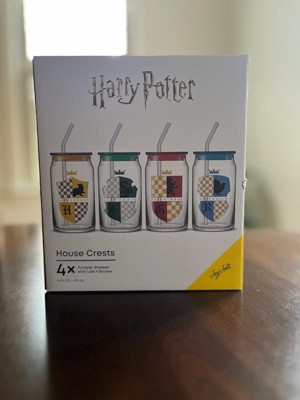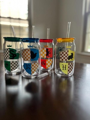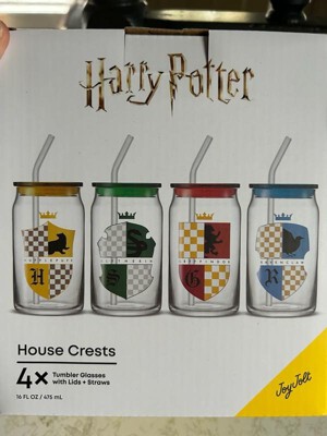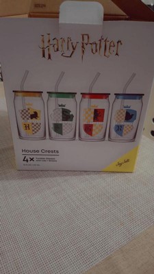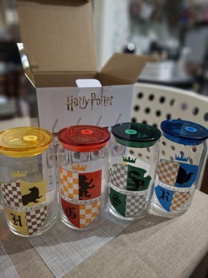 [This review was collected as part of a promotion.] Let me tell you if you have any Harry Ptter fans these are a hit. The glasses come with color coordinating lids and glass straws. The perfect size for a can of your favorite soda. Super easy to clean too. Love the cute designs on each one. Also love that the set come with a straw cleaning brush.