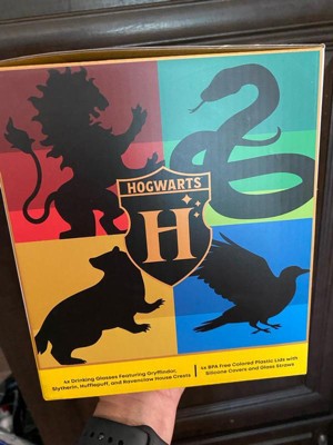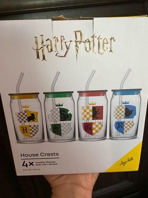 Harry Potter House Crests Tumbler Glasses with Lids - 16 oz - Set of 4