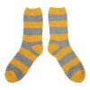 Show your Hufflepuff pride with these women's yellow and gray striped Harry Potter chenille crew socks. Featuring the Hufflepuff badger mascot, these cozy socks add a touch of magical flair to your wardrobe. Made from a blend of 98% polyester and 2% spandex, they provide both comfort and durability. Designed to fit sock size 9-11 and shoe size 5-10, they are easy to care for with a cold machine wash with like colors and a low-heat tumble dry. Avoid bleach to maintain their vibrant look.