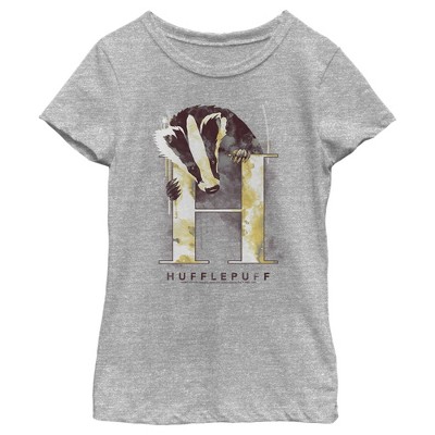 Boys' Harry Potter Hufflepuff Broomstick Badger Logo T-Shirt Charcoal Large