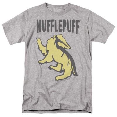 Harry Potter Hufflepuff Line Art Badge Adult T-Shirt Charcoal 2X Large