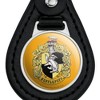 - QUALITY MATERIAL: Our durable round keychain is crafted from leather with a glossy resin-topped emblem featured design shown on one side. Approximately 1.5" (3.8cm) x 2.5" (6.4cm) in overall size, emblem is 1" (2.5cm)..