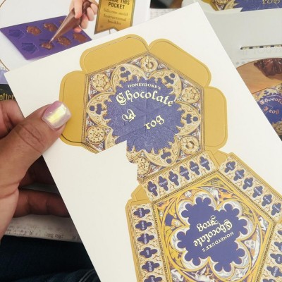 This beautifully packaged set contains a food-safe silicon sheet debossed with eight chocolate frog molds, plus eight foiled gift boxes to contain your chocolates, and "moving" lenticular cards. Simply pour melted chocolate into the (washed) molds and allow the chocolate to harden in the fridge. Then pop out the frogs and put each with a card into a pre-printed, die-cut display box also included in the kit. They make the perfect sweet treat for any Potter fan.